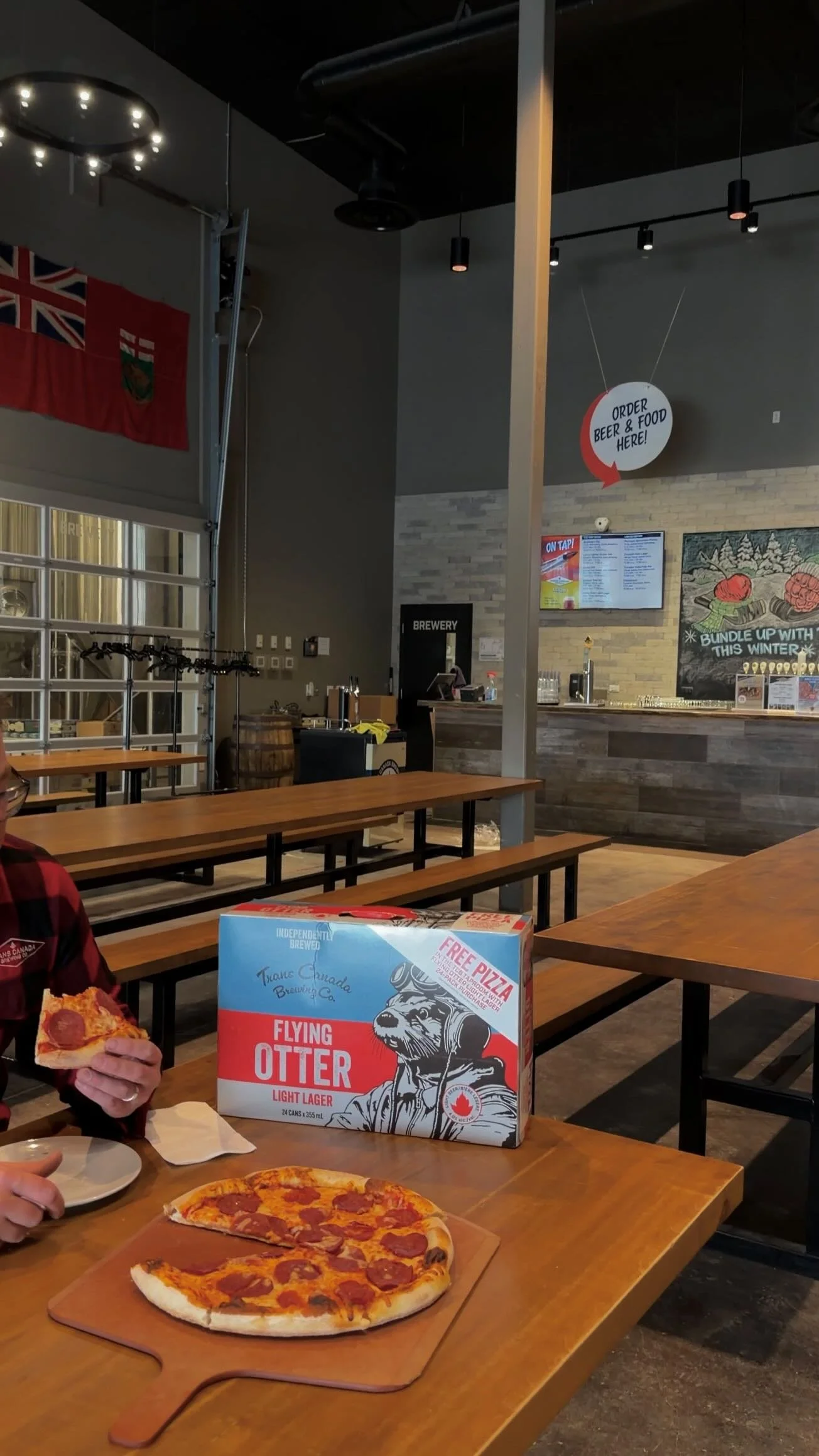 Starting April 1st, when you pick up a specially marked “Free Pizza” Flying Otter Light Lager 24-pack from our General Store, your local Liquor Mart, or your neighbourhood vendor, you'll find a redeemable voucher waiting for you on the bottom of the box. Simply bring that voucher into our Taproom to enjoy a complimentary pizza on us, perfectly paired with the crisp, refreshing taste of Flying Otter.