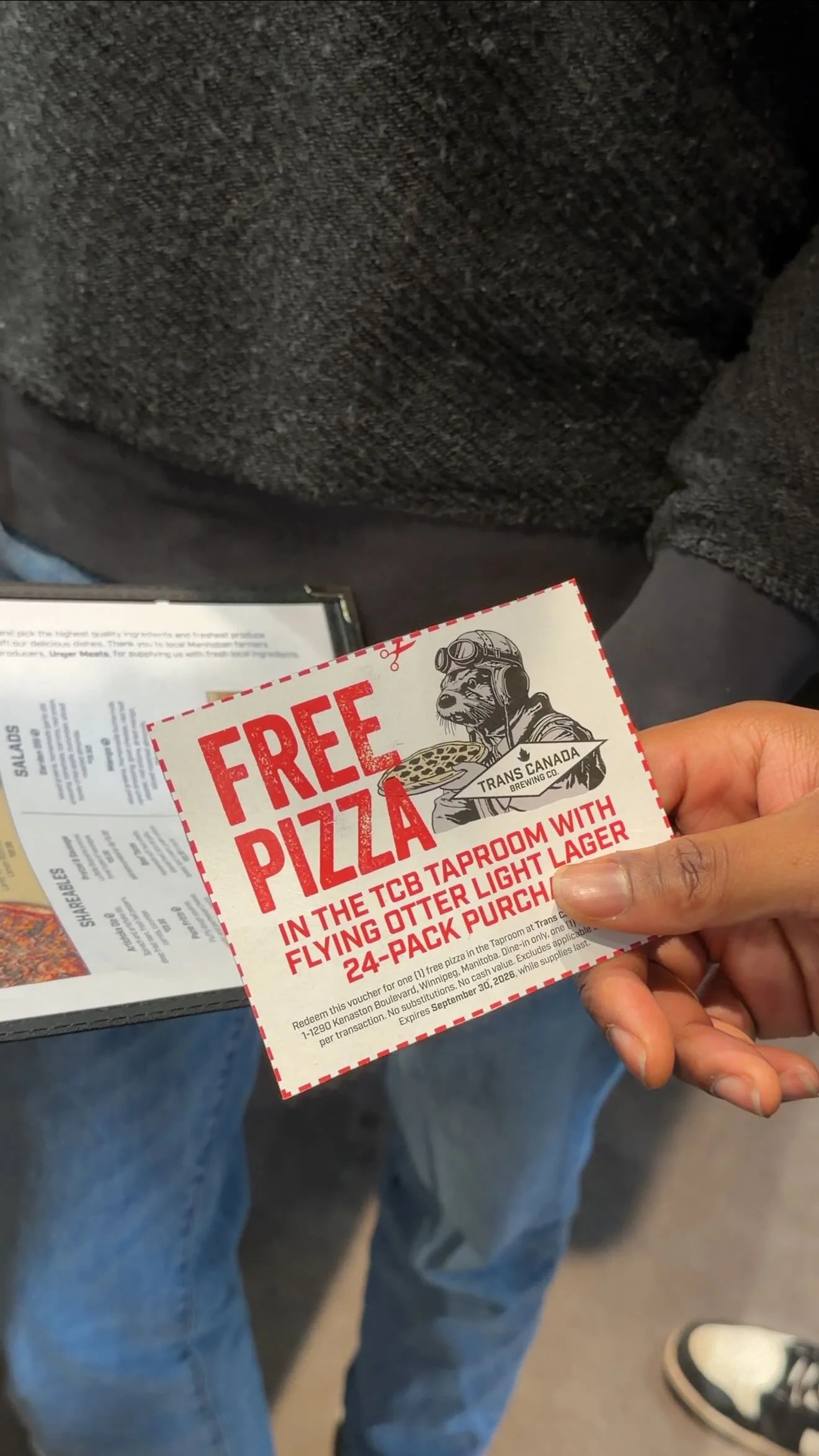 Starting April 1st, when you pick up a specially marked โFree Pizzaโ Flying Otter Light Lager 24-pack from our General Store, your local Liquor Mart, or your neighbourhood vendor, you'll find a redeemable voucher waiting for you on the bottom of the box. Simply bring that voucher into our Taproom to enjoy a complimentary pizza on us, perfectly paired with the crisp, refreshing taste of Flying Otter.