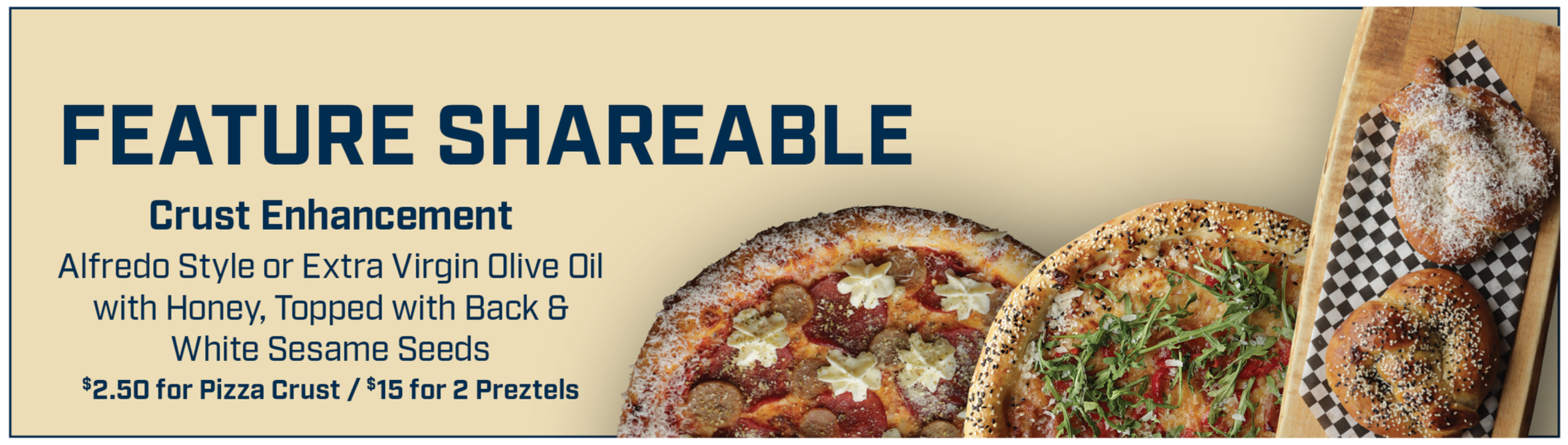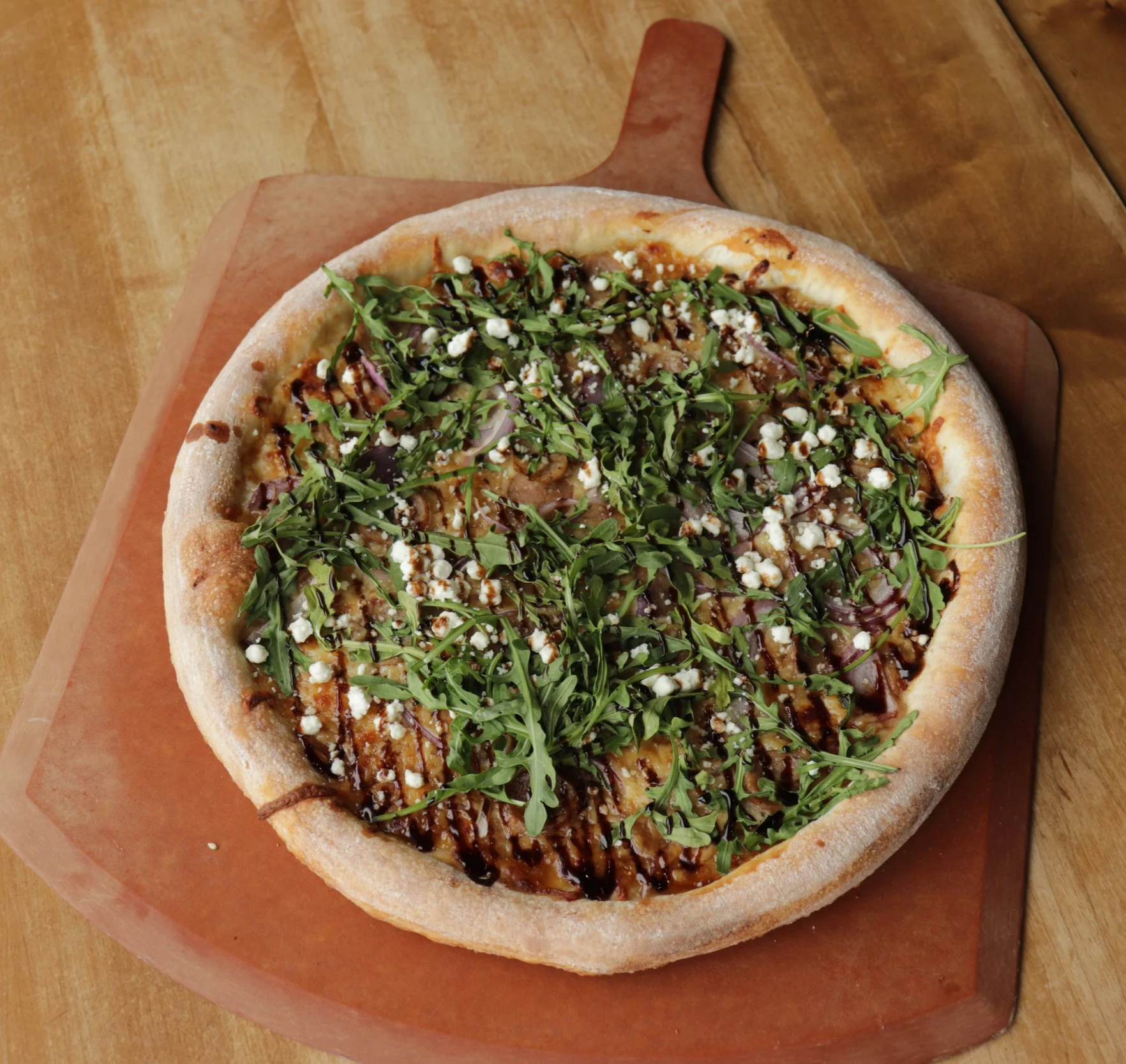 Indulge in a sophisticated blend of flavors that is the perfect blend of sweet and savory. Started off with honeyed fig base topped with melted mozzarella and seasoned Italian sausage. Goat cheese added for a tangy finish, and red onions for a sharp crunch. Once out of the oven, this plate is topped off with fresh arugula and a balsamic glaze drizzle.